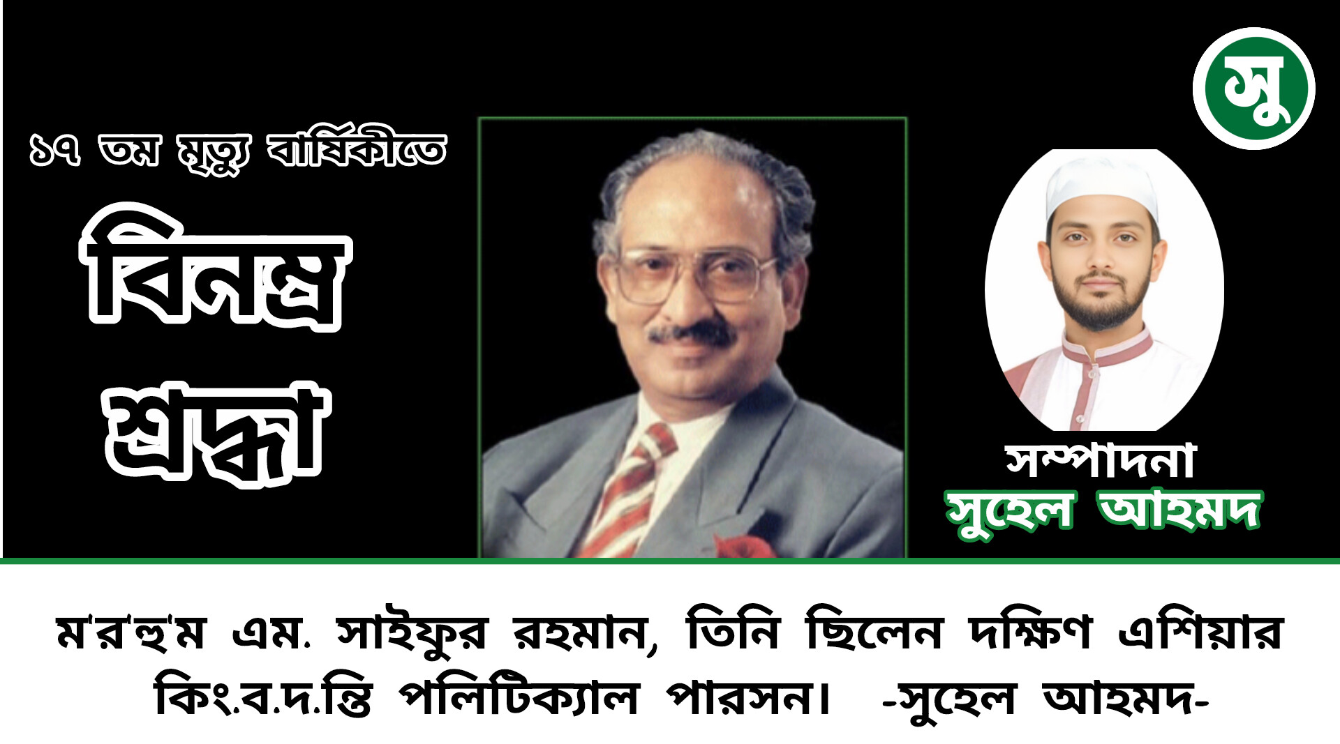 মরহুম এম. সাইফুর রহমান, তিনি ছিলেন দক্ষিণ এশিয়ার কিংবদন্তি পলিটিক্যাল পারসন।