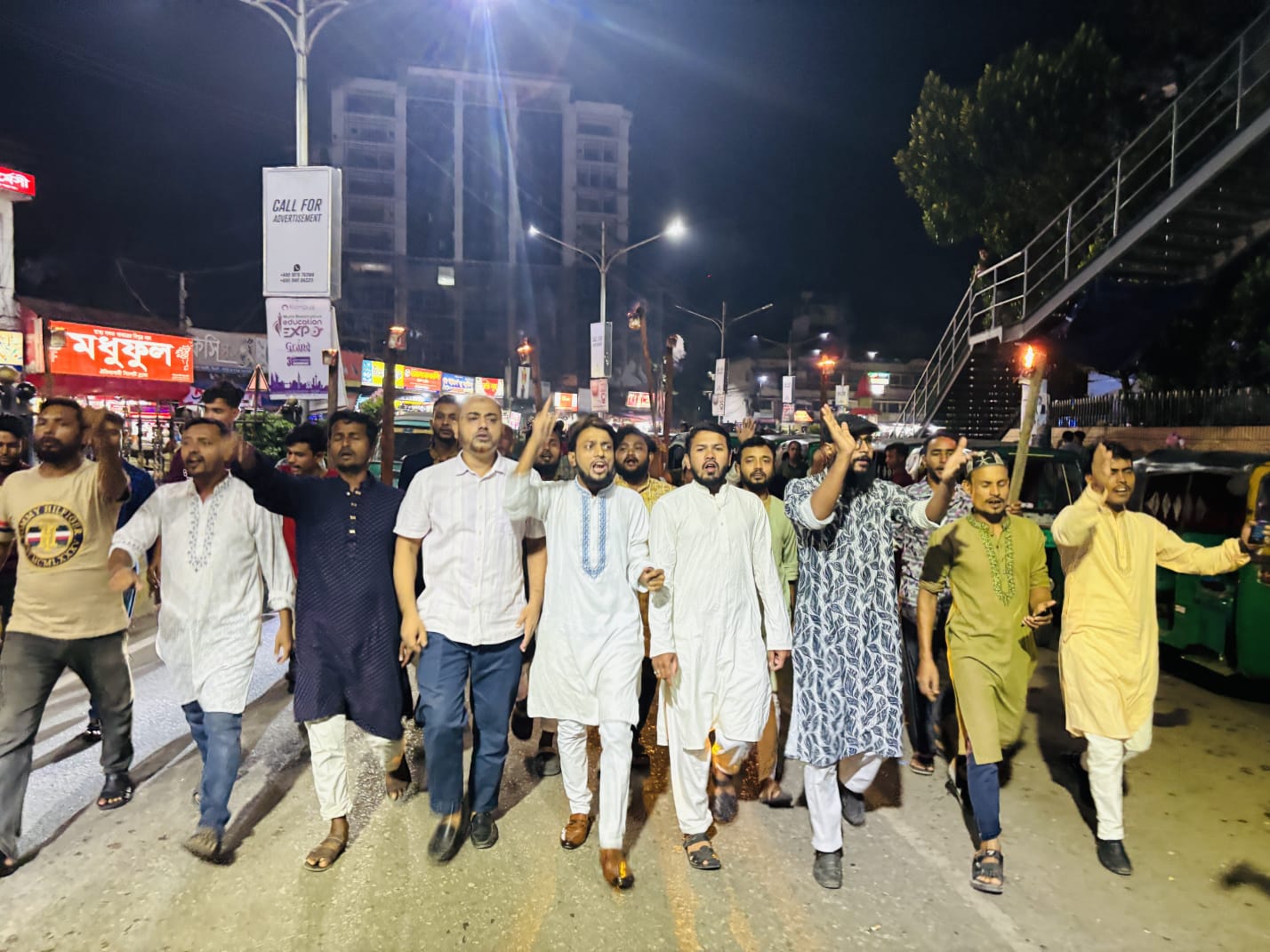 গণঅধিকার পরিষদের সভাপতি নুরের উপর হামলার প্রতিবাদে সিলেটে মশাল মিছিল