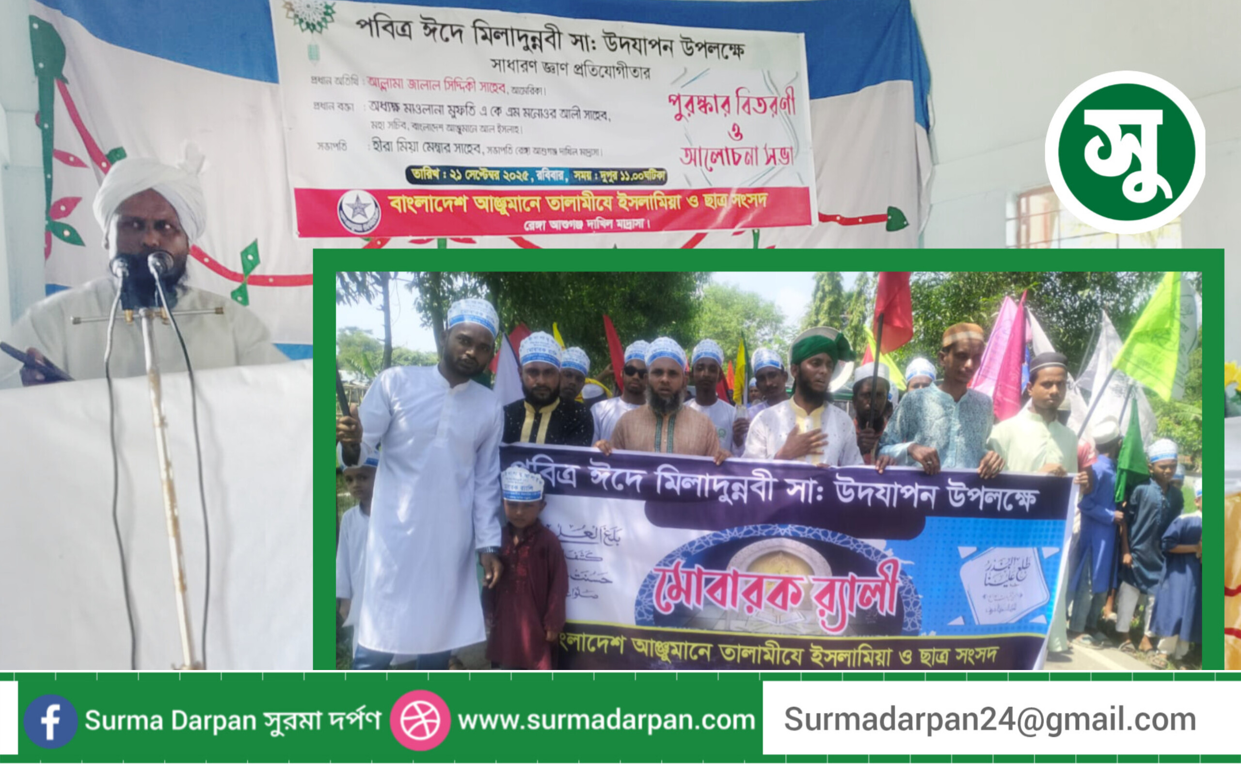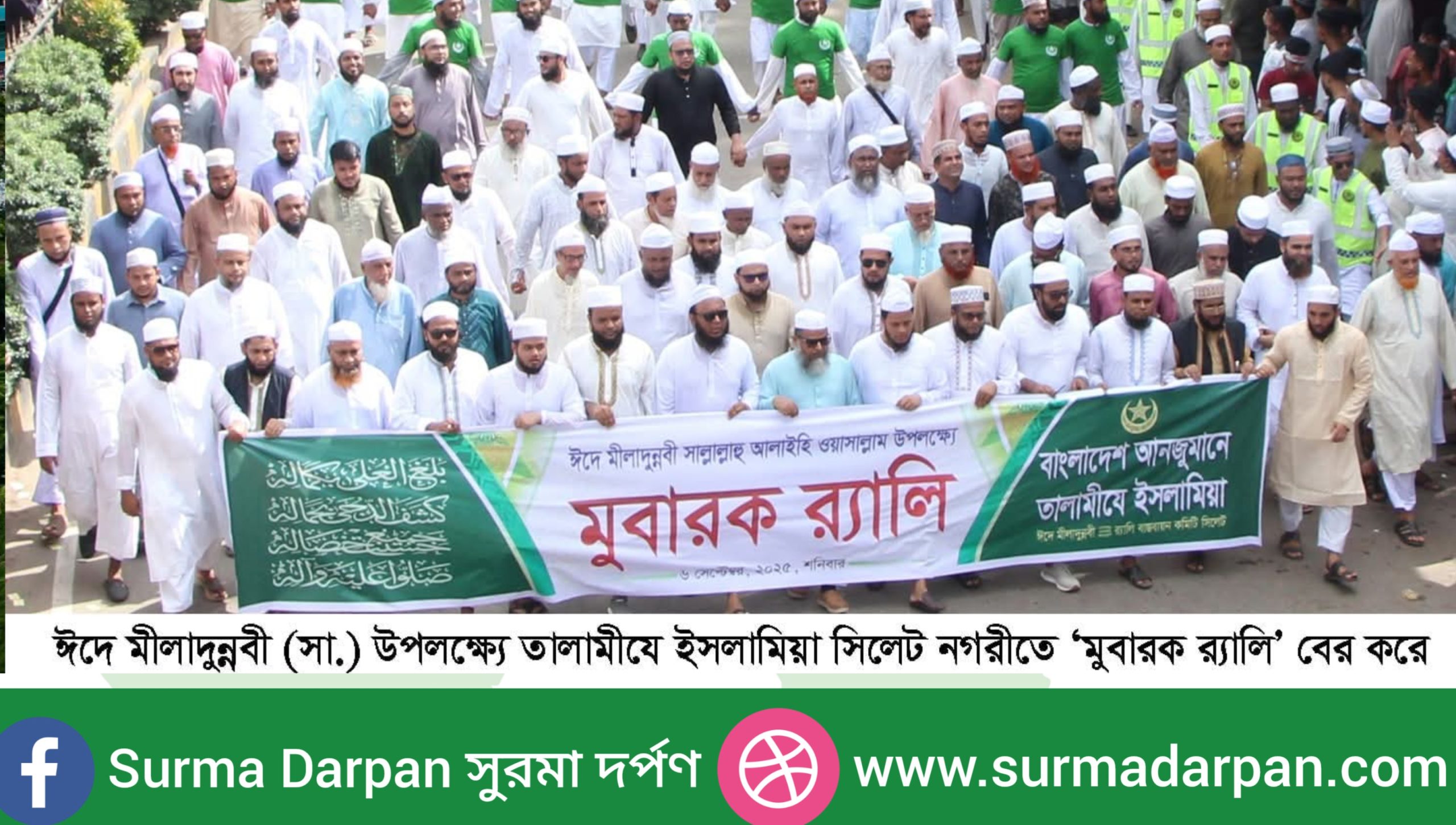 সিলেটে তালামীযে ইসলামিয়ার মীলাদুন্নবী সা. র‌্যালি অনুষ্ঠিত রাসূল সা. এর আদর্শ সমাজে ছড়িয়ে দিতে হবে আধ্যাত্মিক রাজধানী পূণ্যভূমি সিলেট নগরীতে